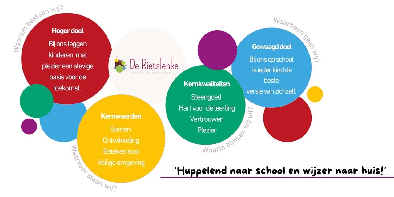 Op de Rietslenke kijken we verder dan vandaag en stimuleren we nieuwsgierigheid en moedigen leerlingen aan hun dromen en ambities te verkennen. Door ons onderwijs te baseren op onze kernwaarden en gebruik te maken van onze kwaliteiten streven we ernaar dit voor ieder kind mogelijk te maken. Hoe wij dit willen verwezenlijken staat hieronder beschreven.